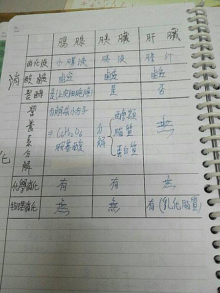 同學最後還貼心附上表格,如果知道化學消化跟物理消化的差別,這三者也十分好區分唷~~![]()
